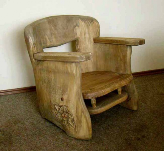 Polecam Państwu oryginalny, wycięty z pnia fotel. Mebel absolutnie unikatowy, wykonany ręcznie, zdobiony motywami rzeźbionymi – drugi taki nie istnieje!