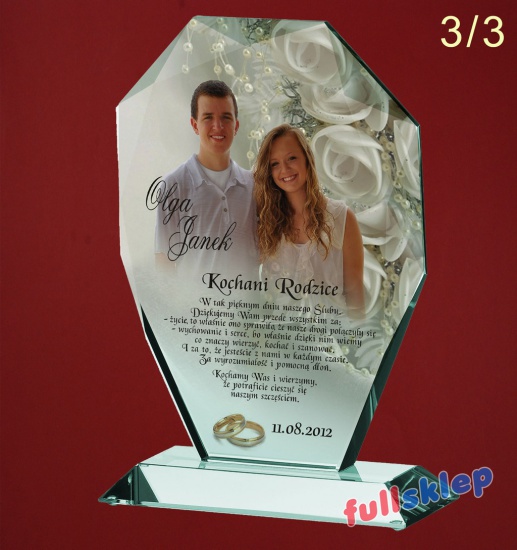 Szklana statuetka z indywidualną dedykacją dla rodziców